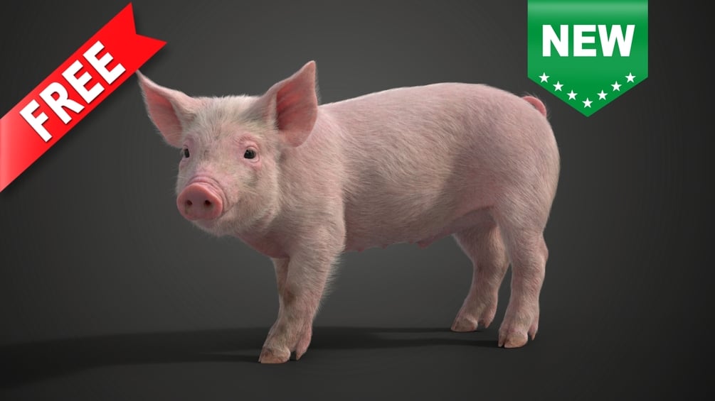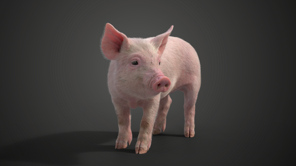 This is a high-quality little white pig model with multiple 4K textures, fur, rigging, and animations, and it's made with Blender and Cycles renderer at real-world scale. The skin texture and the hair texture are made separately for realism.